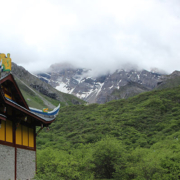 From the direction of the village, a shadow rises up the hill. It’s the young woman with her baby. The mother joins Khandro-la’s circumambulation several paces behind her. The baby, slung under the woman’s breast, nurses at will, while the mother entrains with the goddess’s rhythm. Heel and then toe, breathe in and then out.